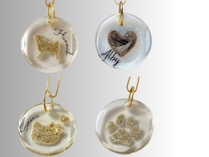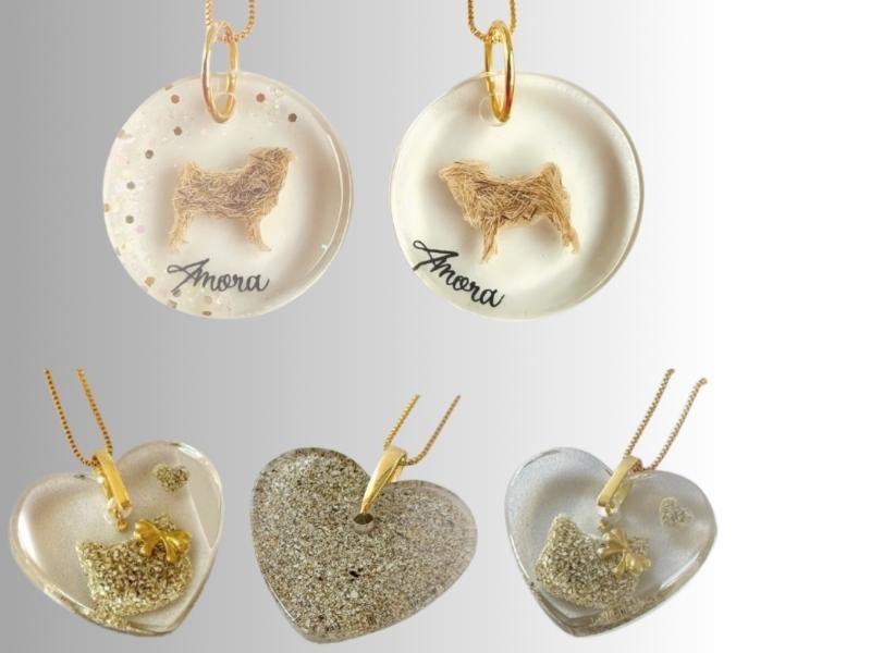 Joia pingente em resina personalizado com cinzas ou pelos do seu pet.
